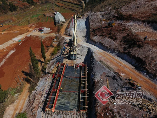 昆楚高速公路扩建土建tj-3标复工现场开展混凝土施工。周文 摄
