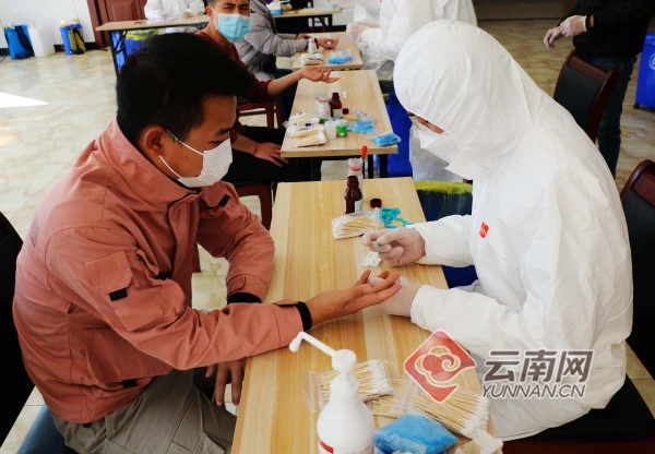 3月2日,中铁二十五局集团承建的昆楚高速公路扩建土建TJ-3标工程施工现场,当地医疗机构正对263名复工人员进行检测,指导现场开展疫情防控,助力项目建设全面复工。