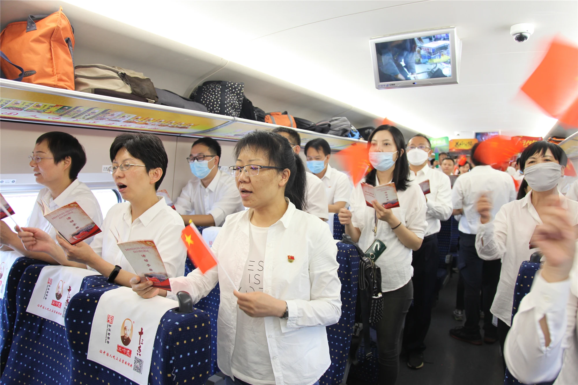 在昆明、威信往返的高铁上,全体党员合唱红歌,开展党史知识问答,省交通运输厅党组成员、局党委书记杨金莹,局长陈钢,驻村回局工作队员等同志为大家讲微党课、分享学习心得。