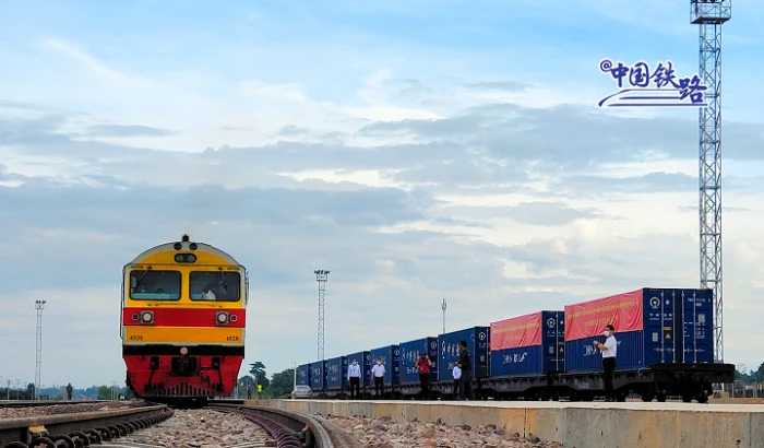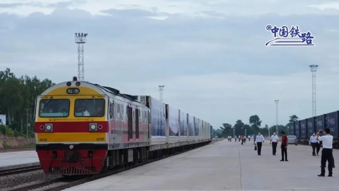 7月1日,中老铁路万象南站换装场正式建成投用,首批跨境集装箱货物在此完成标准轨与米轨间换装后,驶向泰国林查班港。这标志着中老泰铁路实现互联互通,陆海联运国际物流通道更加便捷畅通。