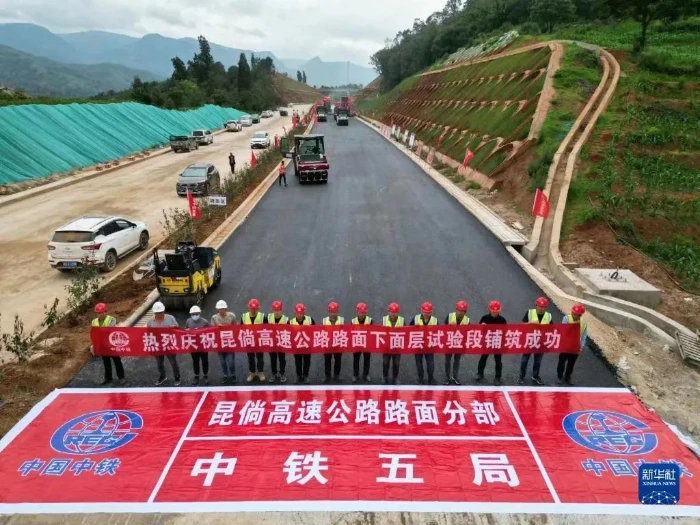 近日,由中铁五局承揽施工的昆倘高速公路沥青路面首铺成功。