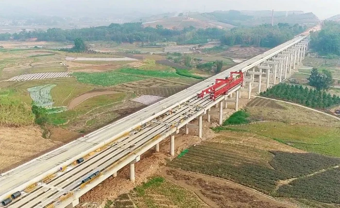 近日,由省交投集团投资建设的瑞孟高速公路那弄3号大桥最后一片梁板吊装完毕,标志着勐撒至耿马北互通立交主线梁板全部吊装完成。