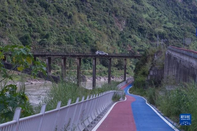这是2022年9月13日拍摄的怒江沿线的“美丽公路”绿道和桥梁。新华社记者岑云鹏摄