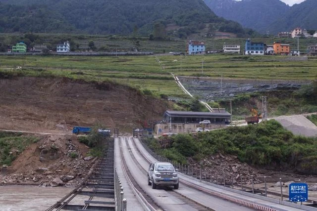 2022年9月14日,怒江州福贡县布拉底村居民驾车通过布拉底西桥。新华社记者岑云鹏摄