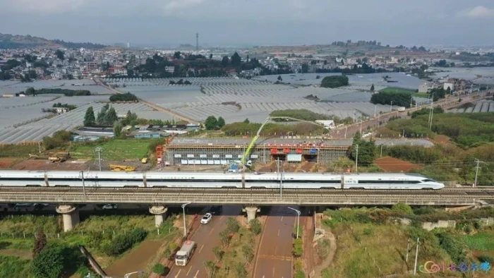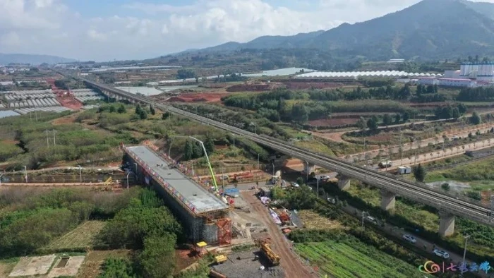 渝昆高铁云南段,全长388.6公里,是云南省内首条开行的时速350公里的高速铁路。此次连续梁完成混凝土浇筑施工的大桥,为嵩明蔡家村3号大桥,位于昆明市嵩明县境内。