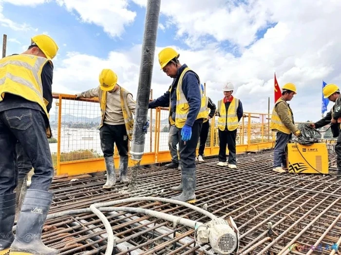 据介绍,施工过程中,为确保进度和质量,参建各方进行多次施工方案比选研讨,严格施工方案,浇筑工作不间断持续进行,用时一天一夜,既保证了施工进度的有序推进,又保障了公路和高铁行车的正常通行。