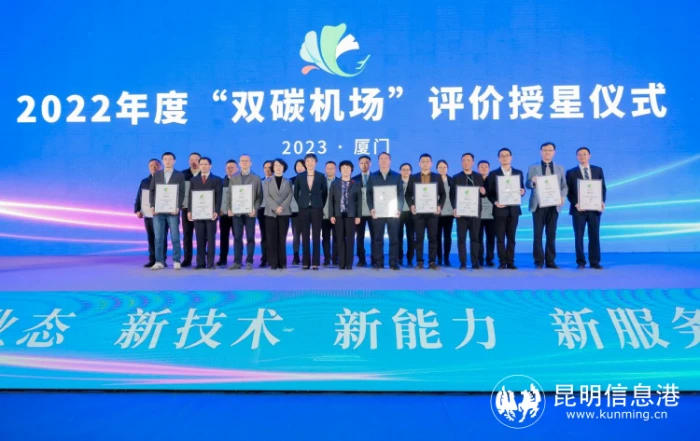 据介绍,2022年,在云南航产投集团(机场集团)的统筹下,昆明长水国际机场积极参与中国民用机场协会组织开展的“双碳机场”评价工作,梳理各类文档资料1208项,完成了能源审计工作,完善了碳排放管理相关制度,并于2022年12月29日通过“双碳机场”现场审核,2023年2月13日通过中国民用机场协会组织的专家评审,成为国内首批荣获三星级“双碳机场”称号的八个机场之一。这八个机场分别是:深圳宝安国际机场、石家庄正定国际机场、昆明长水国际机场、成都双流国际机场、上海浦东国际机场、上海虹桥国际机场、北京首都国际机场、西安咸阳国际机场。