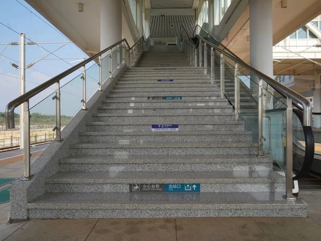 需要特别注意的是,由便捷换乘楼梯到达天桥后有两个通道,一个为出站通道,一个为便捷换乘通道。