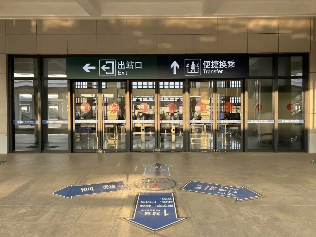 按照指示标识往前直走、左转,到达候车室门口。工作人员查验乘车信息后即可进入候车室等候后续行程列车。