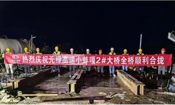 11月10日凌晨,随着最后一方混凝土浇筑完毕,元绿高速小蚌嘎2号大桥右幅主桥顺利合龙,至此小蚌嘎2号大桥完成全桥合龙。