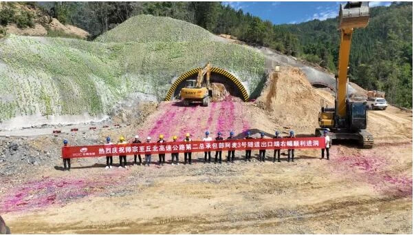 11月8日,由师丘高速第二总承包部承建的师丘高速阿麦3#隧道出口顺利进洞。