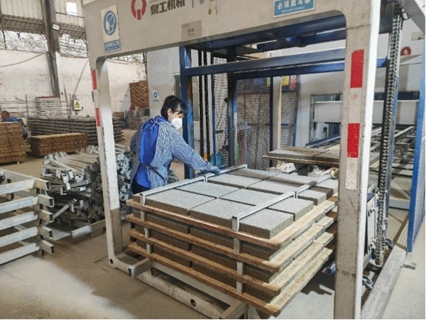 石膏矿渣胶凝材料PC仿石透水砖成型