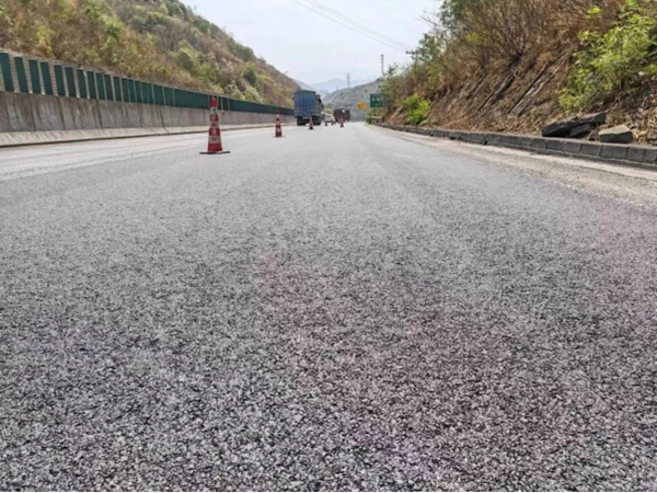 本次铺筑长度为2.6公里,厚度2.5厘米,铺筑于行车道,总体效果良好。