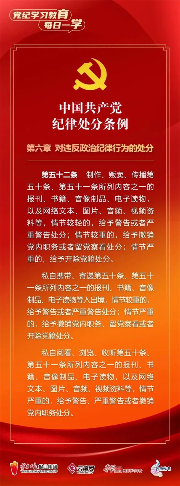 为深入学习贯彻落实习近平总书记关于党纪学习教育的重要讲话和重要指示精神,便于全省各级党组织和广大党员、干部深入学习贯彻修订后的《中国共产党纪律处分条例》,云南网联合“学习强国”云南学习平台、云南发布共同策划推出“党纪学习教育•每日一学”专栏,营造全员参与、人人学纪的浓厚氛围。今天,我们推出第㉓期,一起来学习。
