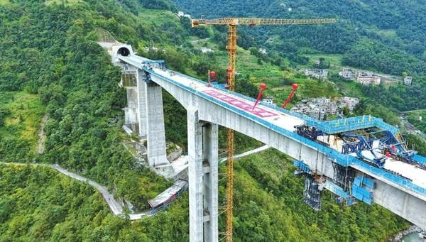 9月30日,由中国铁建大桥局承建的渝昆高铁三股水特大桥合龙。这是渝昆高铁全线首座墩高130米以上特高桥合龙,为全线按期建成通车奠定了坚实基础。至此,渝昆高铁桥梁施工已完成超97%。