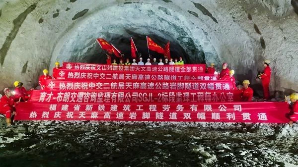 近日,随着云南天麻高速公路重点控制性工程——全线最长隧道岩脚隧道双幅贯通,标志着天麻高速所有隧道全线贯通。