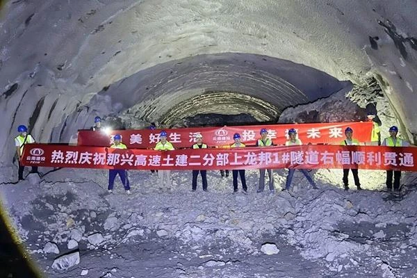 此外,那洒至兴街高速公路上龙邦1号隧道右幅顺利贯通。上龙邦1号隧道地处广南县那洒镇上龙邦村东北侧,为分离式隧道,右幅全长755米,最大埋深84.3米。