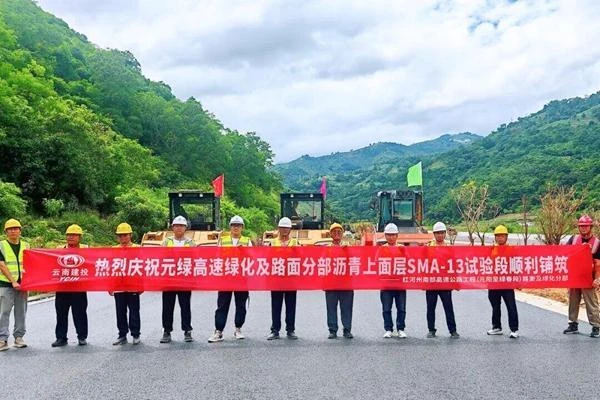 近日,元阳至绿春高速公路项目完成沥青混凝土上面层试验段铺筑,路面工程施工进入新阶段。本次试验段位于元阳立交DK0+292-DK0+692段,铺筑长度400米,设计厚度4厘米,路面宽度11米,采用改性沥青玛蹄脂混凝土SMA-13进行施工,各项指标符合设计与规范要求。