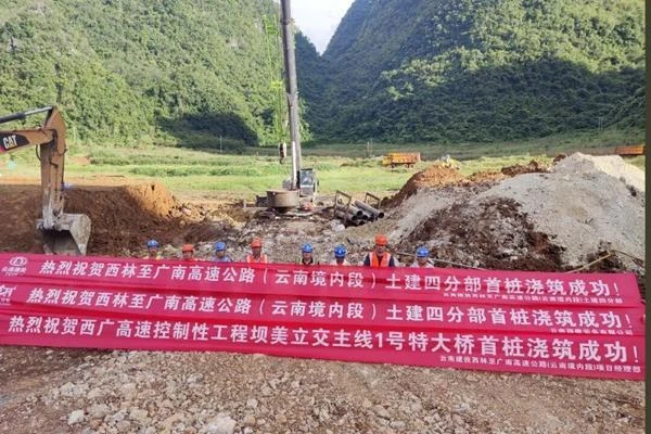 近日,西林至广南高速公路(云南段)项目坝美立交主线1号特大桥首棵桩基顺利完成浇筑。西广高速主线共设桥梁32座(双幅),其中坝美立交主线1号特大桥是该项目的关键控制性工程之一,左幅长1804.68米,右幅长1809.53米。