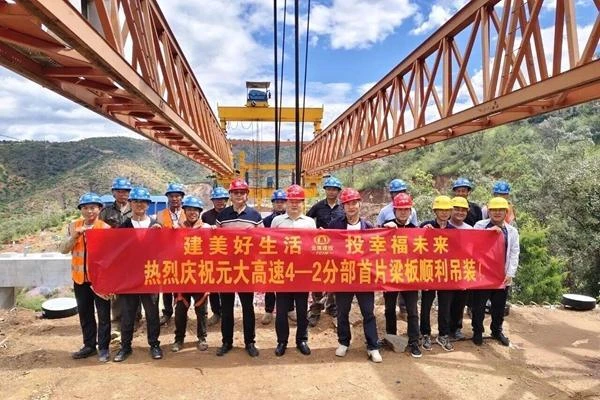 10月9日,元大高速公路项目土建4-2分部上庄2号大桥首片梁板顺利吊装,标志着该桥梁建设进入上部结构施工阶段。