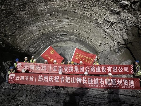 10月2日,孟勐高速公路卡把山隧道右幅顺利贯通。