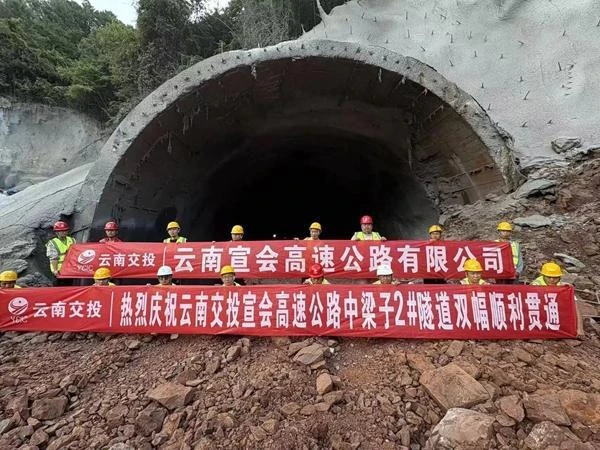 10月1日,宣会高速公路中梁子2号隧道顺利贯通,标志着宣会高速隧道工程实现全部贯通。