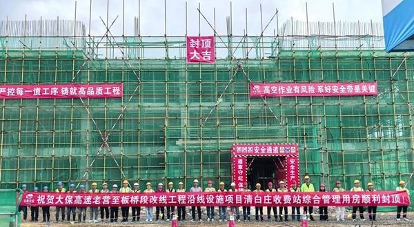 10月3日,大保高速老营至板桥段改线工程清白收费站管理用房实现主体结构封顶。