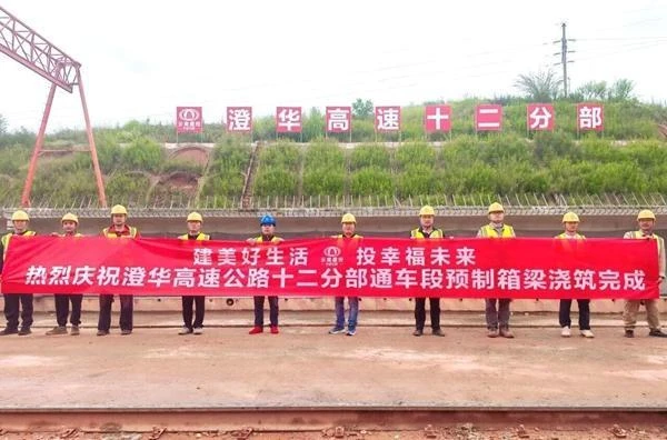 近日,澄华高速公路项目顺利完成沙河大桥箱梁架设、十二分部通车段箱梁预制两个节点目标,标志着项目施工重点全面转入桥面系阶段。
