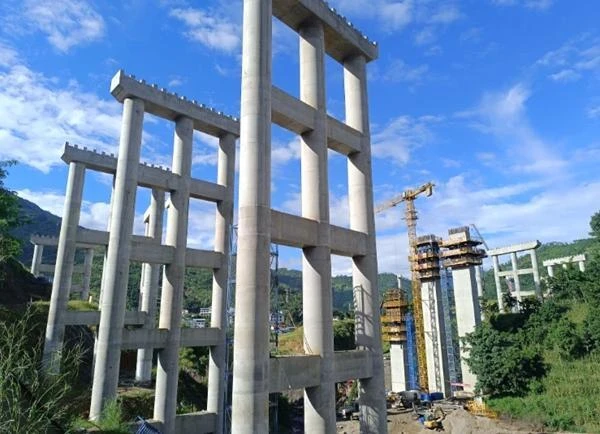 该桥为左右分离式桥梁,右幅长988米、左幅长941米,最大墩高118.8米、最大桥高141.5米。大桥结构型式采用连续钢构+T梁组合,墩柱高达120米。